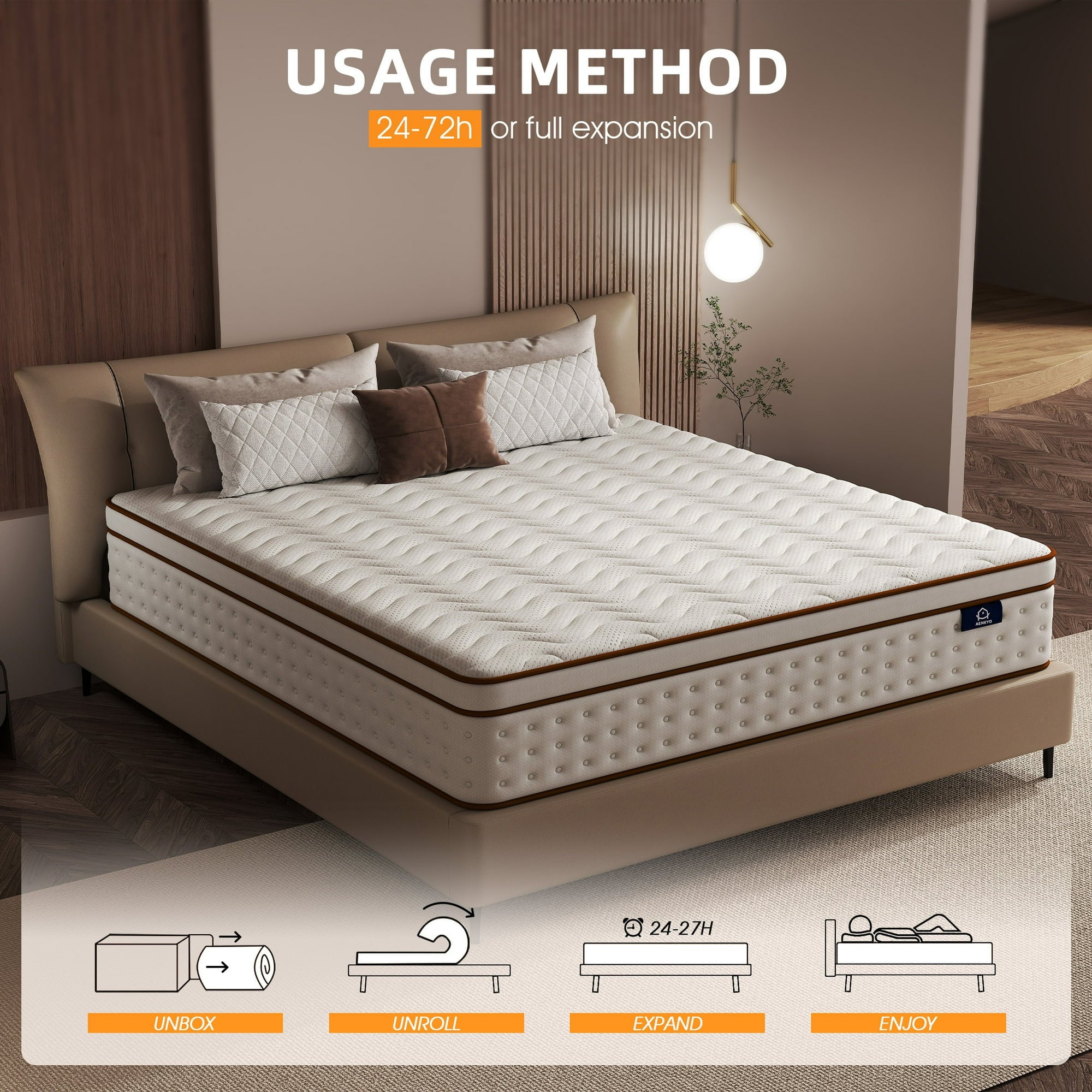 AENKYO 10" Queen Euro Top Hybrid Mattress and Gel Memory Foam, Adult
