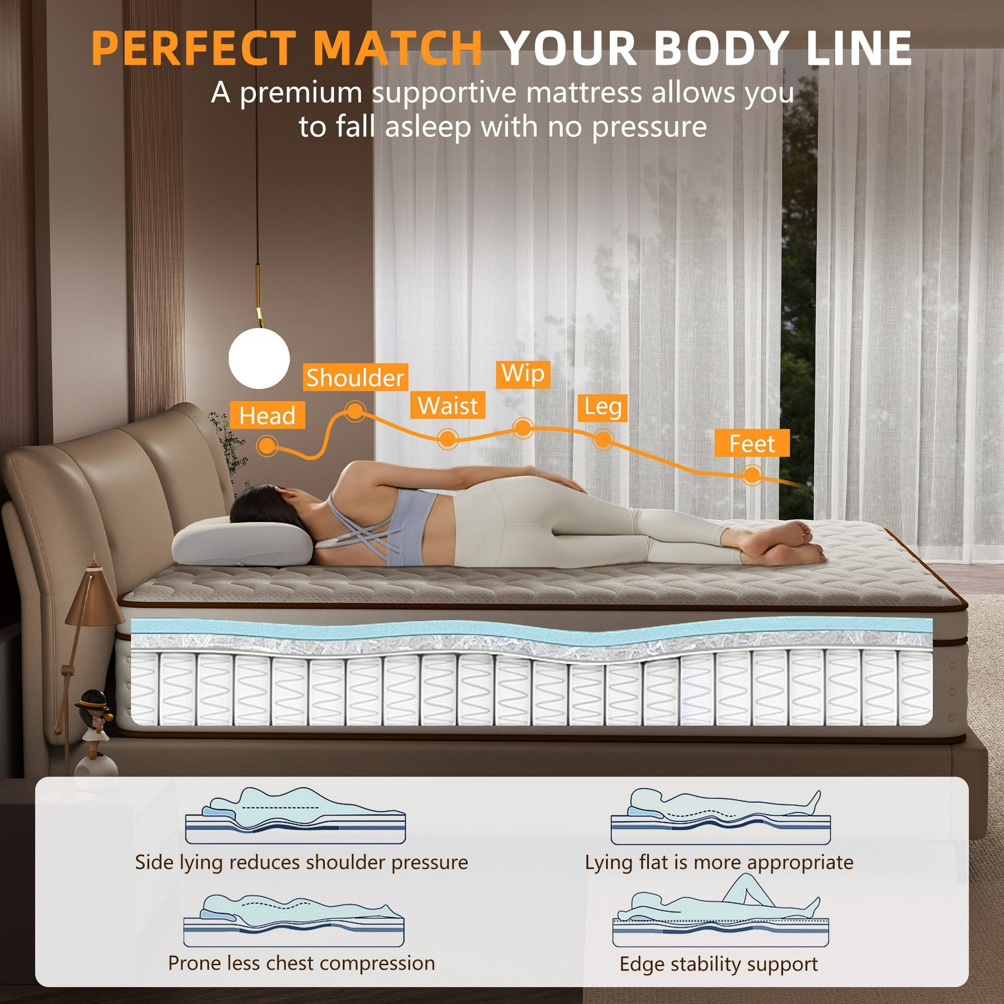 Ergonomic Support: Designed for side, back, and stomach sleepers, this mattress offers balanced support for proper spinal alignment and pressure relief, helping you wake up refreshed, no matter your sleep position.
