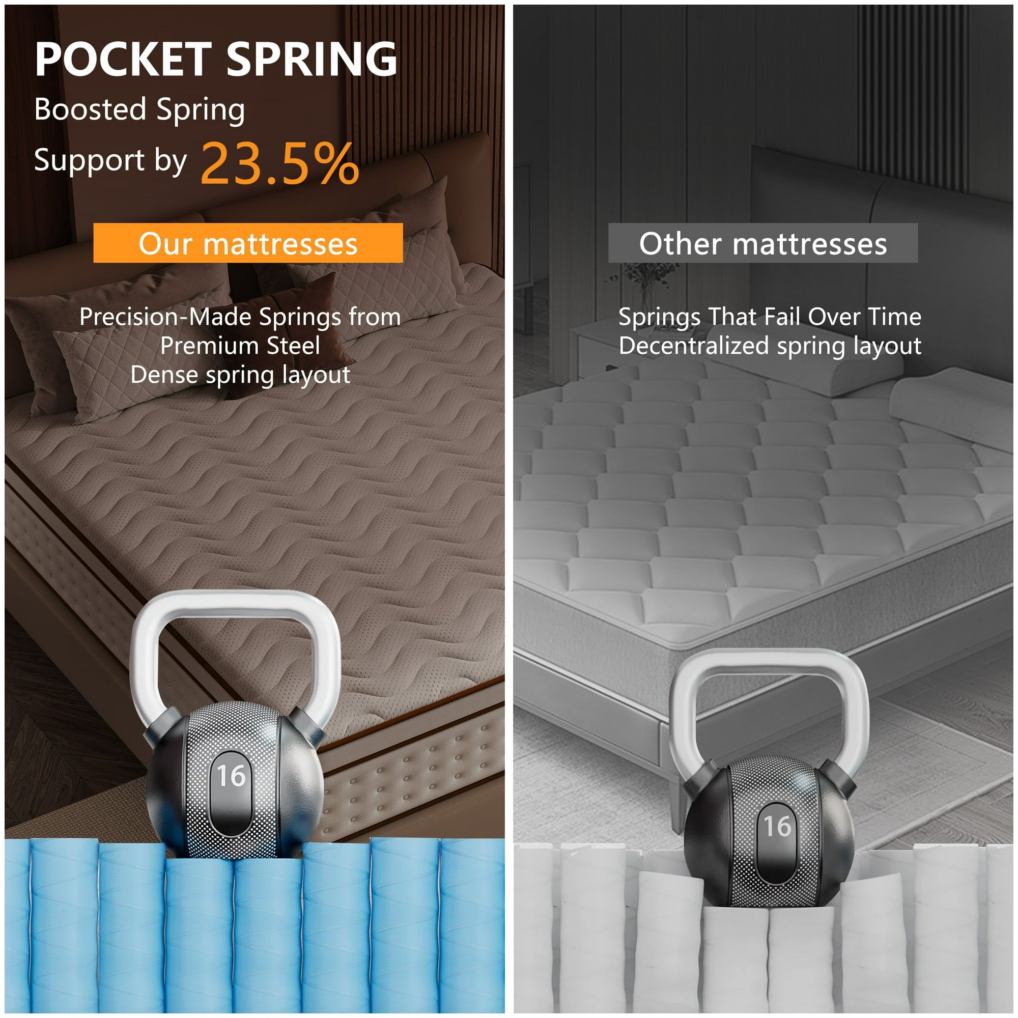 Motion Isolation: Ideal for couples and light sleepers, the mattress uses independent pocket springs to reduce motion transfer, offering a peaceful night's sleep without being disturbed by partners or pets.