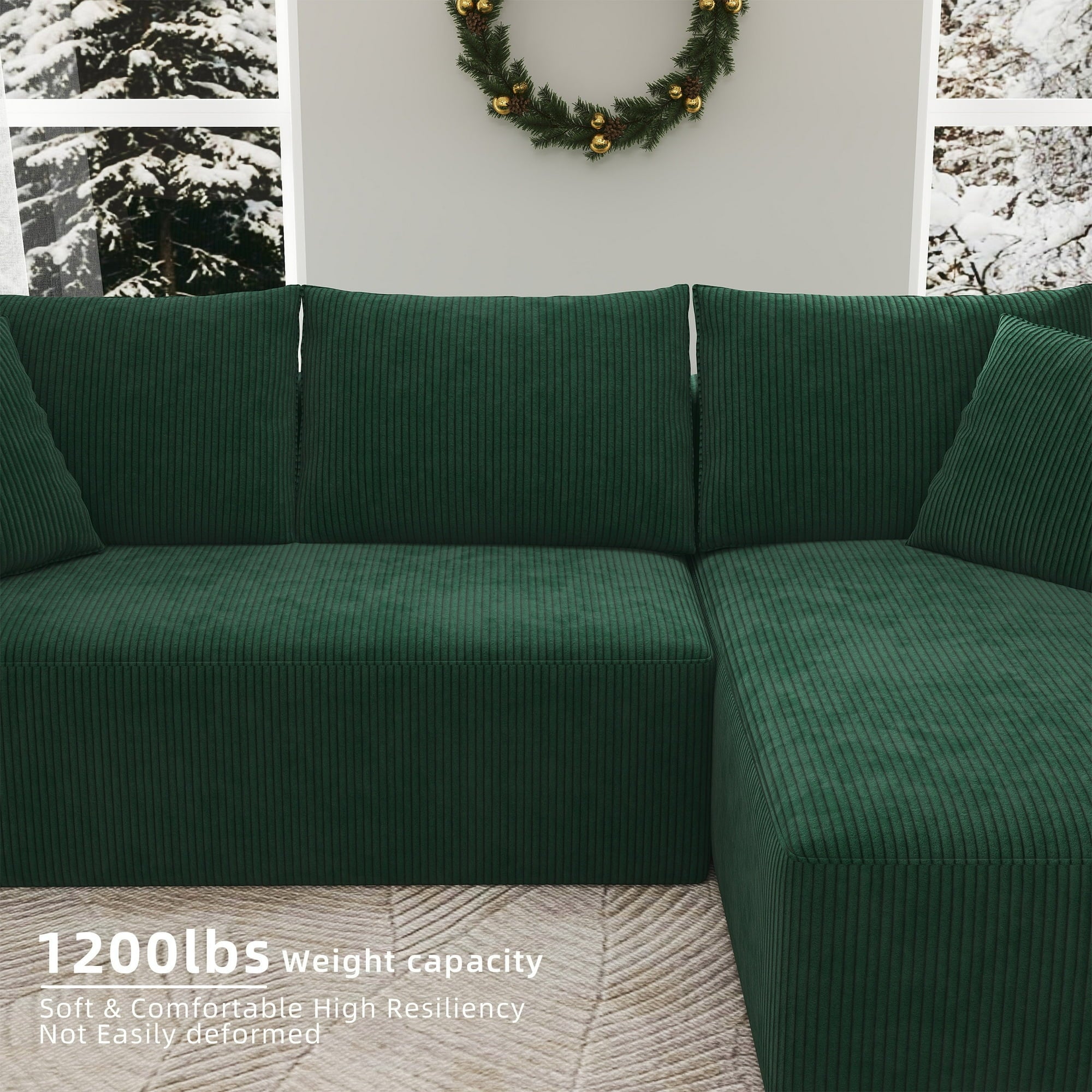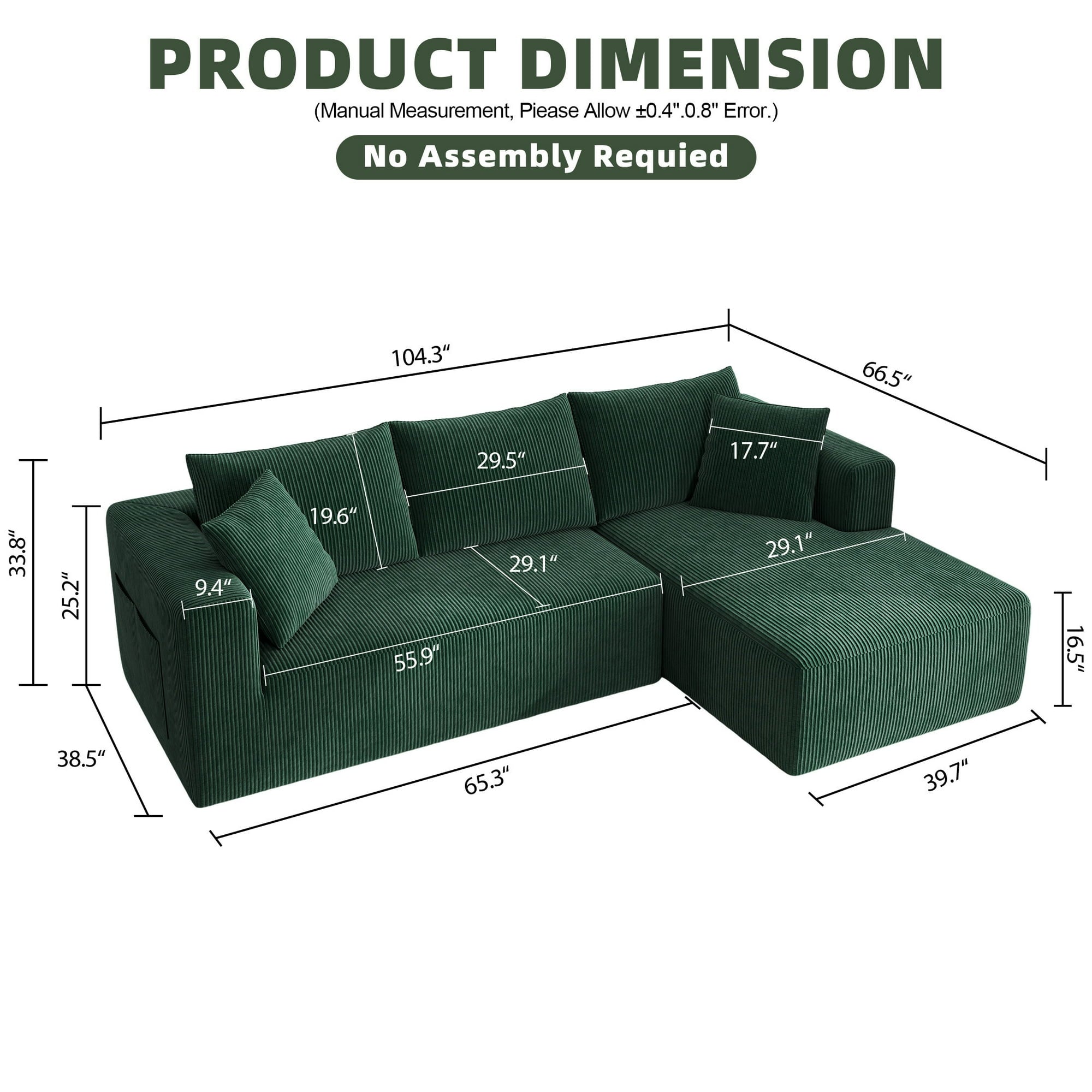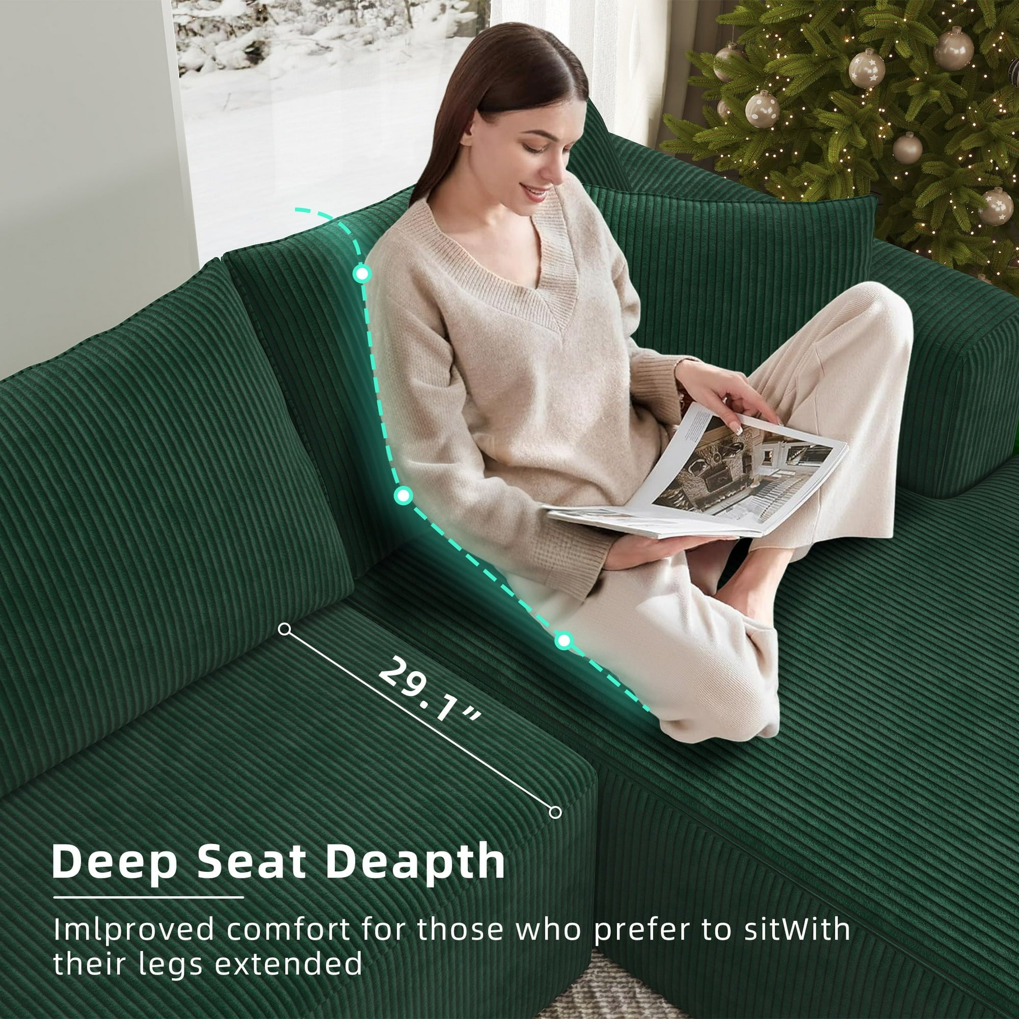 AENKYO 104" Modular L-Shape Sectional Sofa with Chaise, Deep-Seat Cloud Couch, Green Corduroy