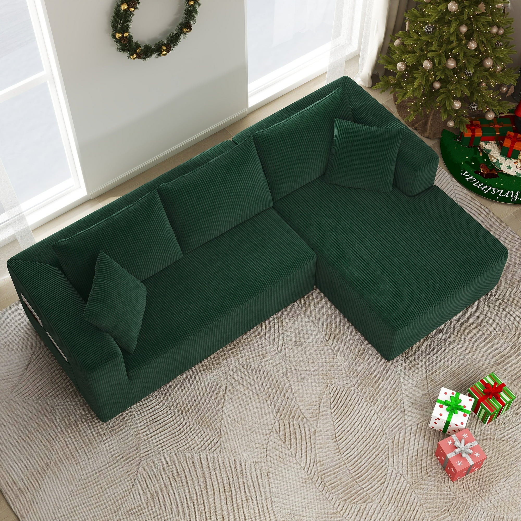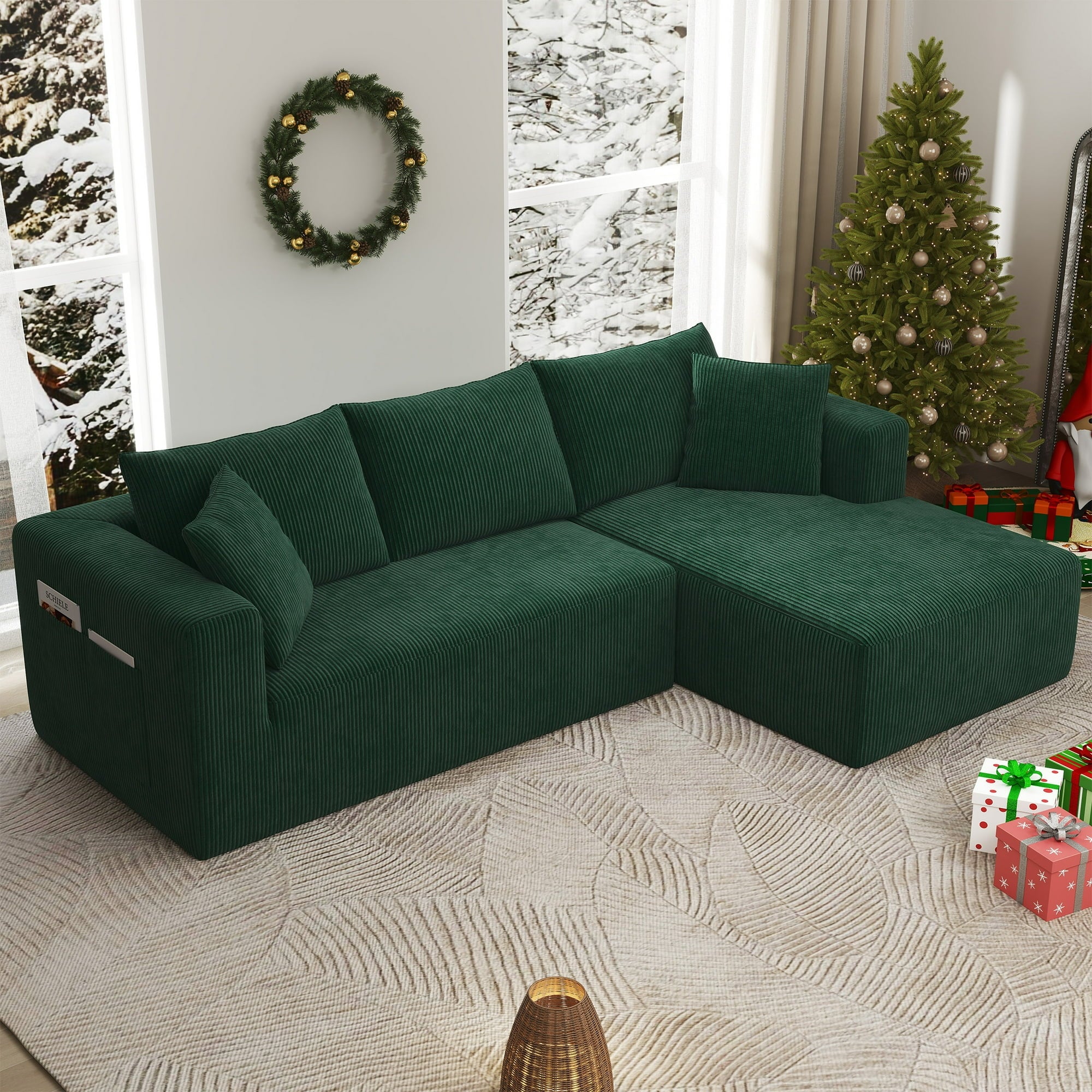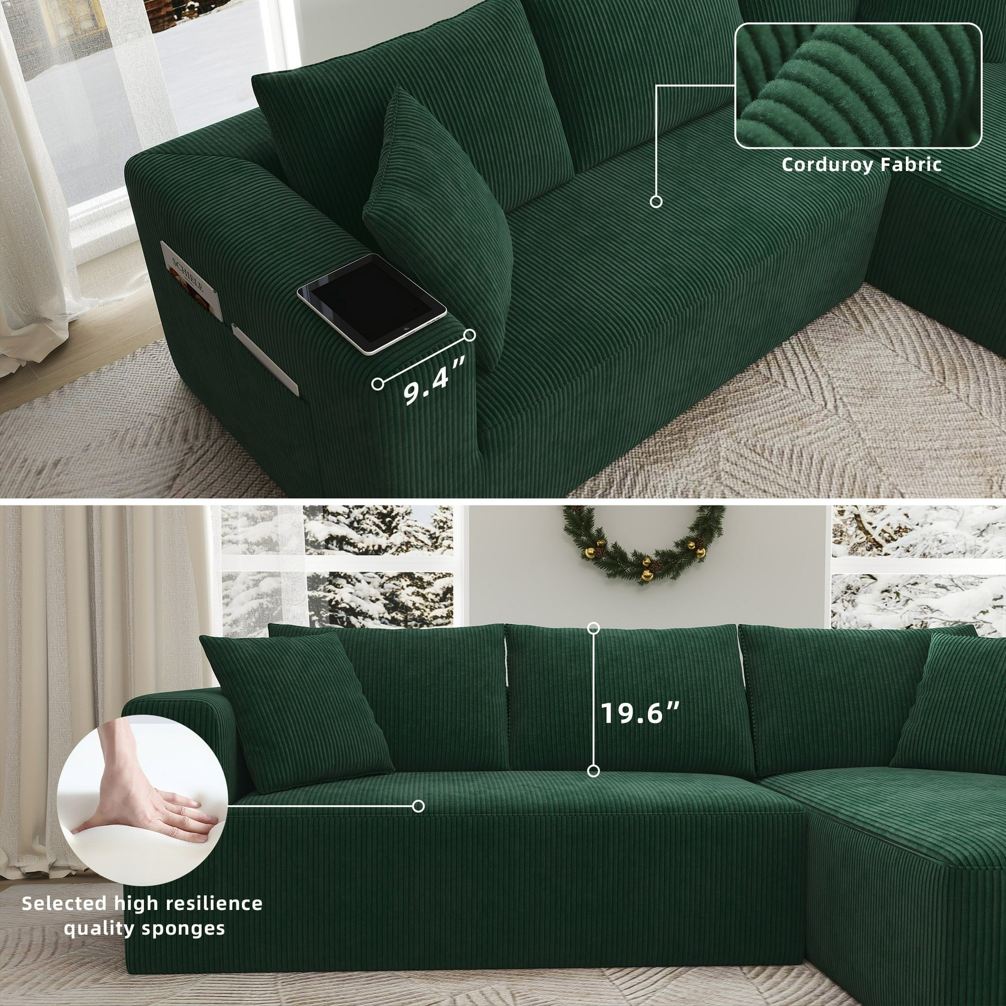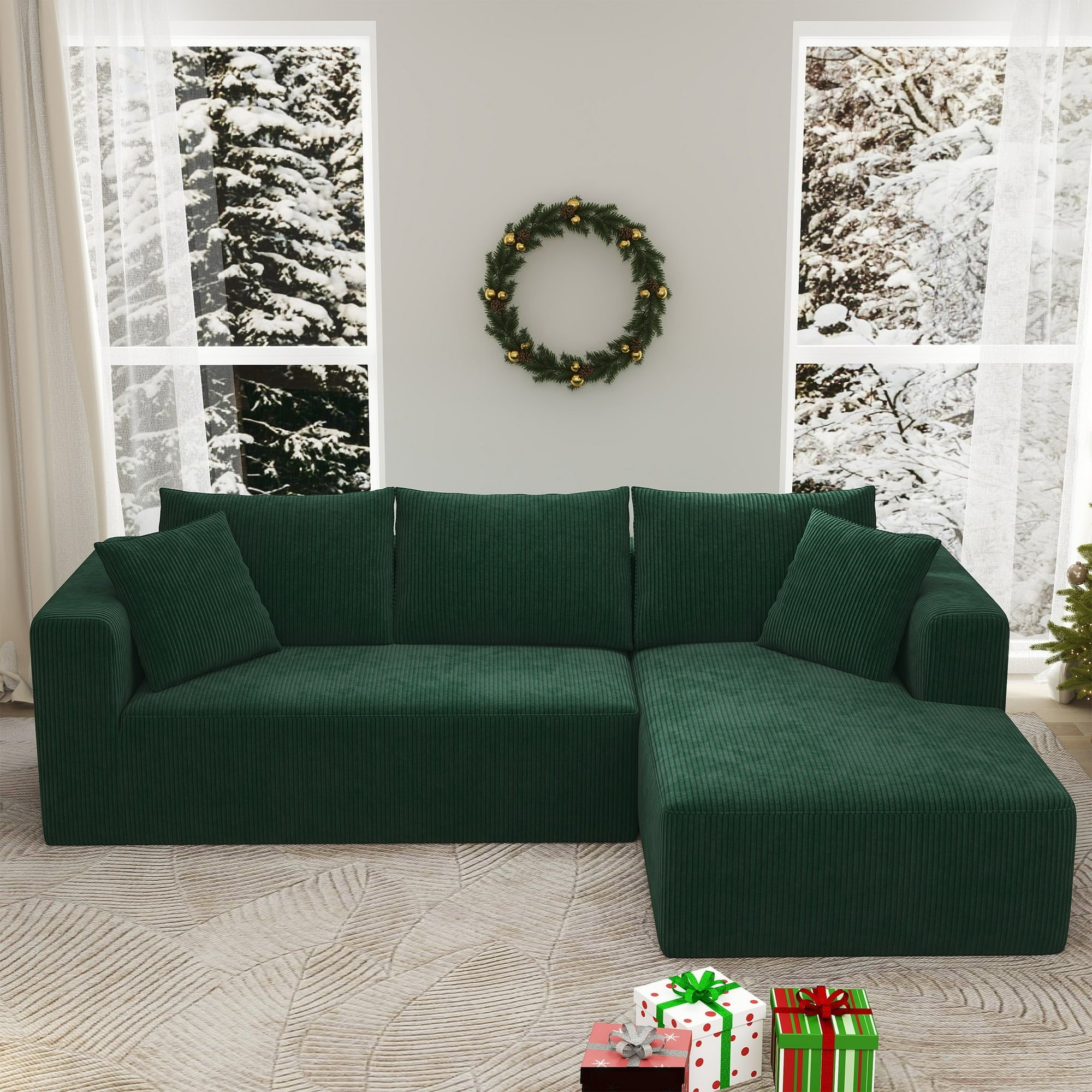 AENKYO 104" Modular L-Shape Sectional Sofa with Chaise, Deep-Seat Cloud Couch, Green Corduroy