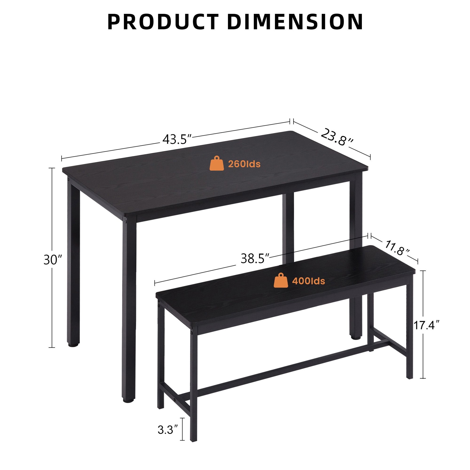 AENKYO 3-Piece Kitchen Dining Table Set with Bench,Modern Wood Top & Metal Frame, Black
