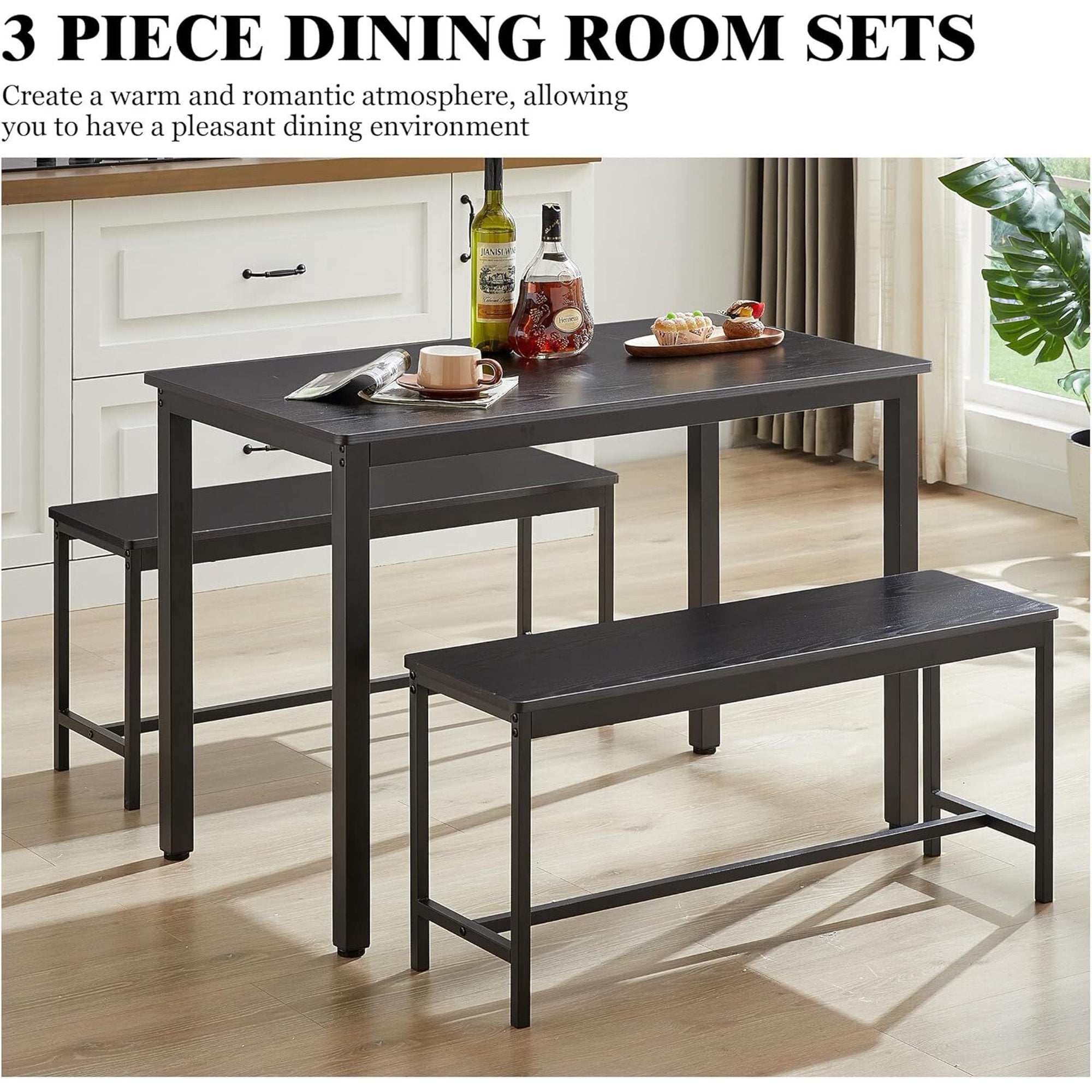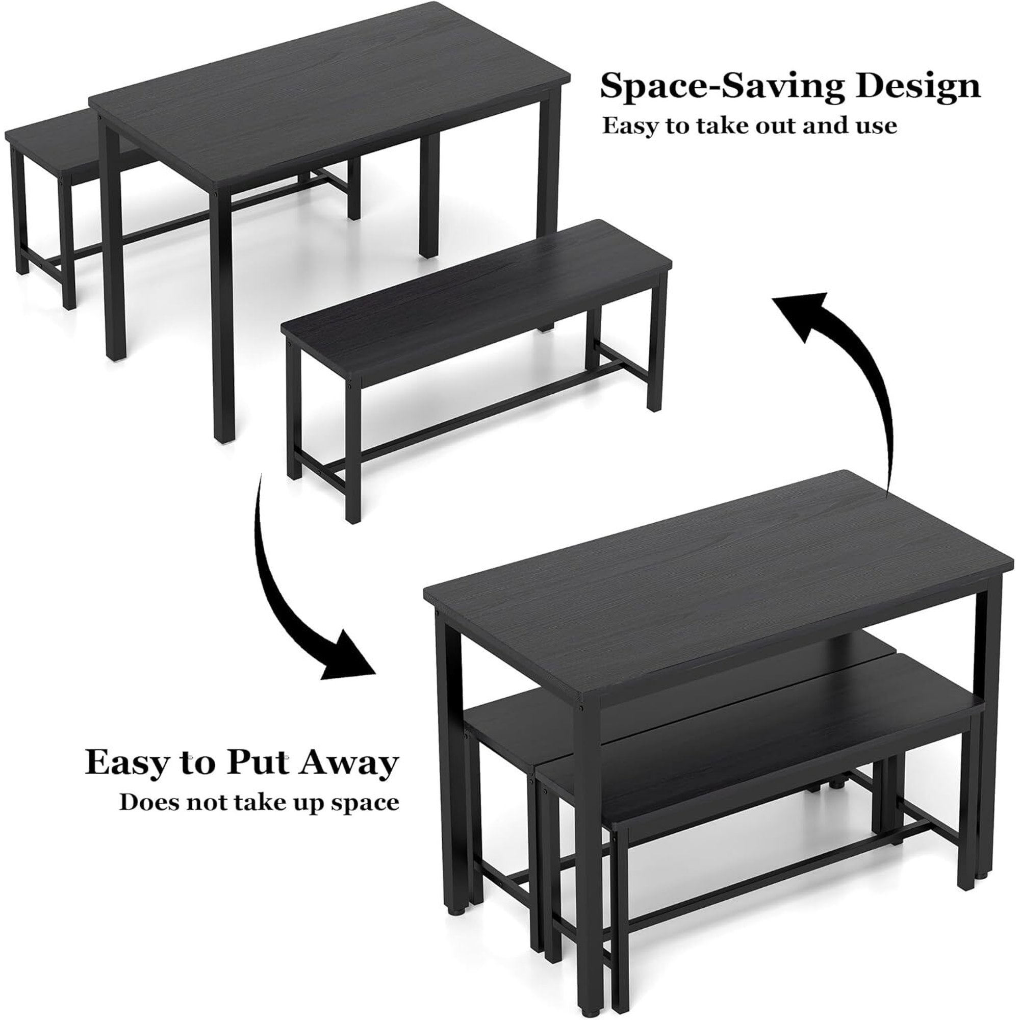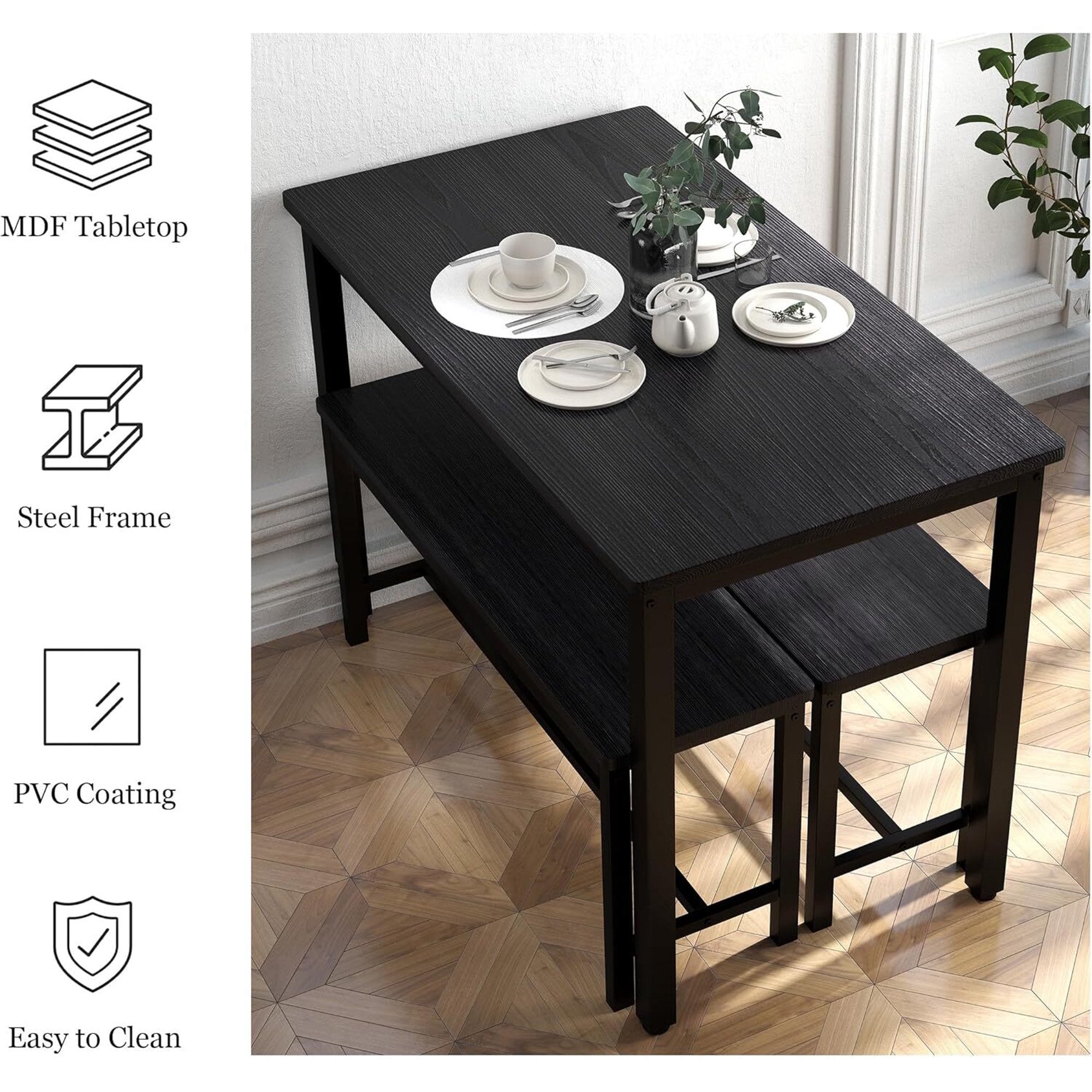 Compact & Space-Saving Dining Table Set - This 3-piece dining table set is perfect for small spaces like apartments, kitchen nooks, or dorm rooms. The bench dining table set design allows the benches to slide under the table, maximizing space and keeping your area tidy. Its modern wood top and metal frame add both function and style to any breakfast nook or living room furniture setup.