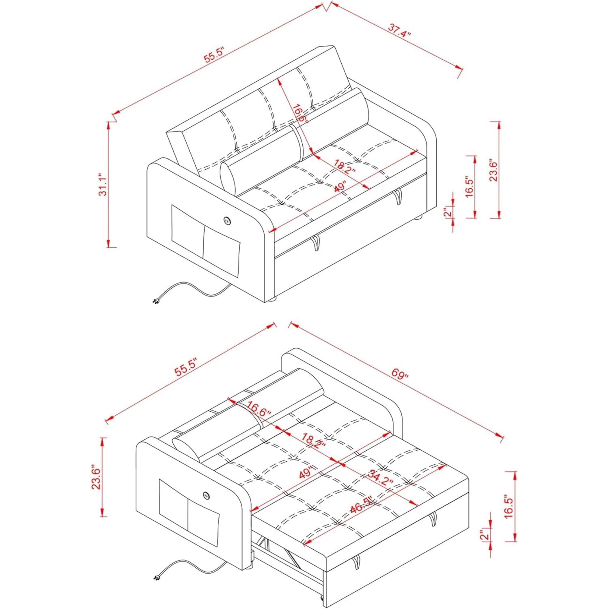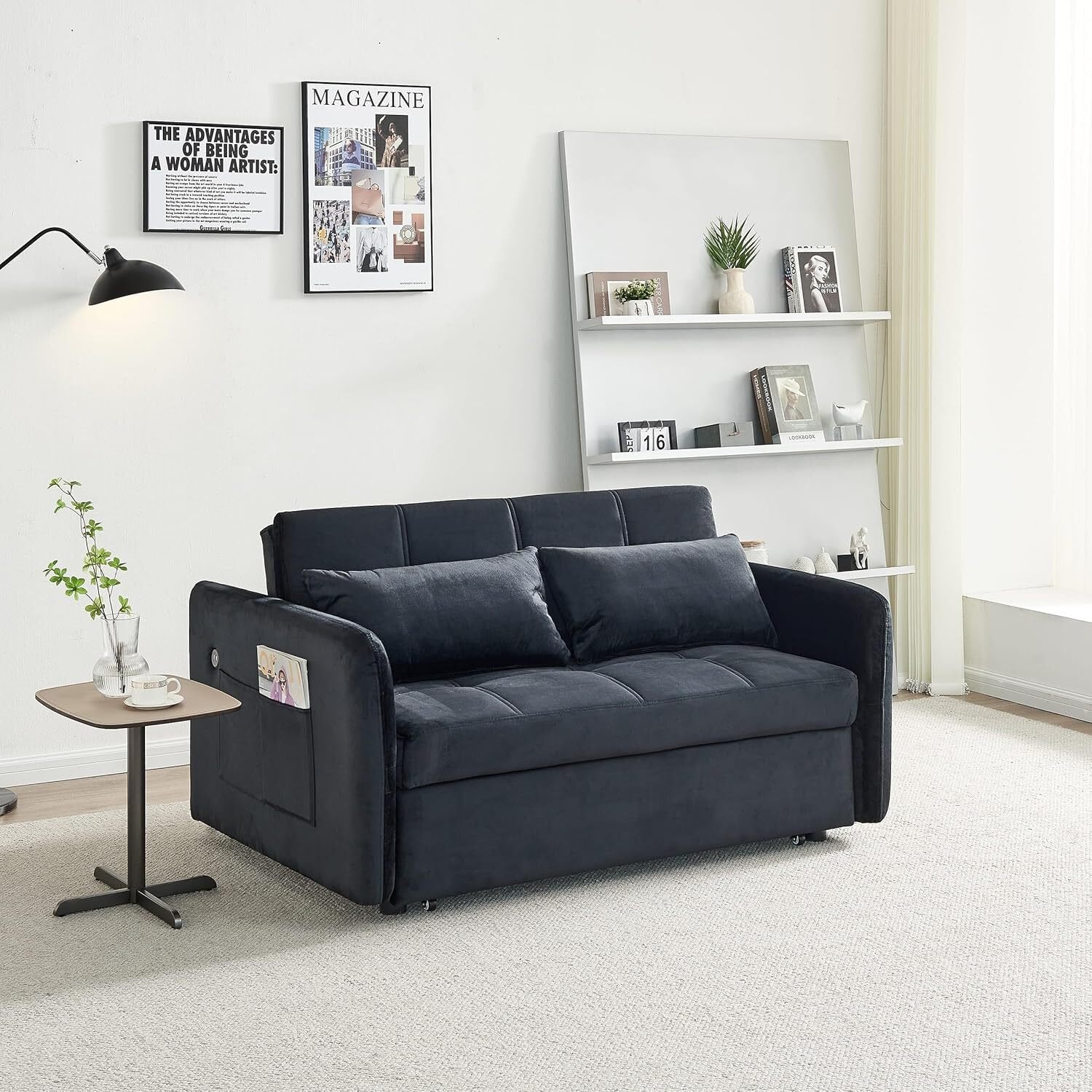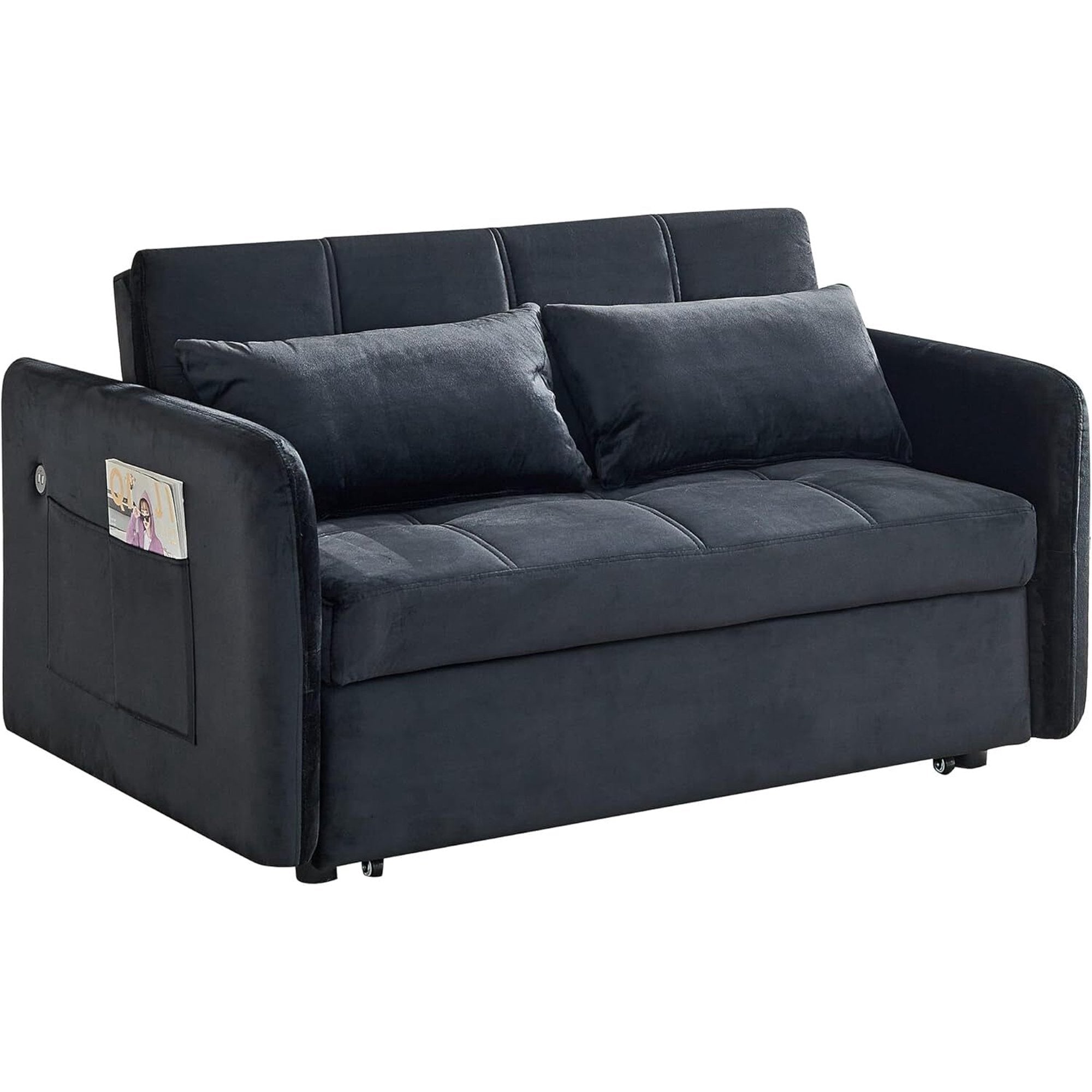 AENKYO 55.5" Pull-Out Loveseat Sleeper Sofa Bed with USB Ports and Side Pockets – Black
