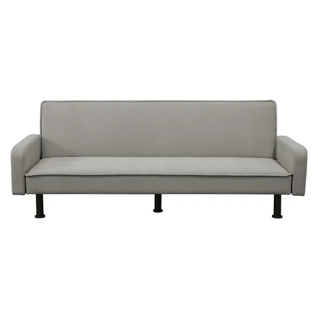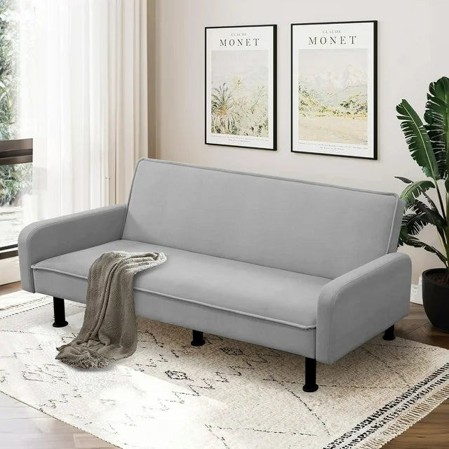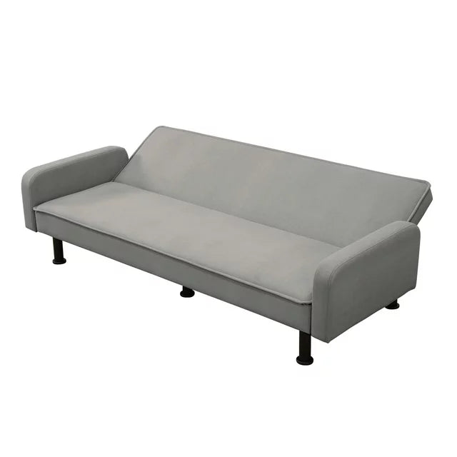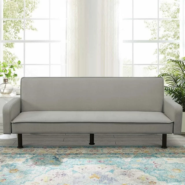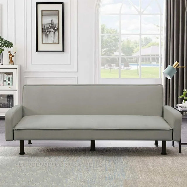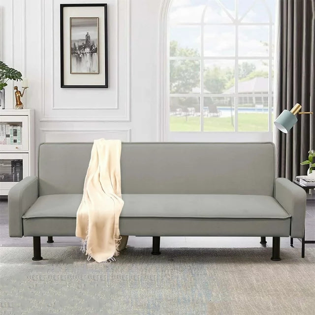 AENKYO 78" Convertible Futon Sofa Bed, Upholstered Arm Couch for Home Office, Flannel, Gray