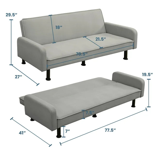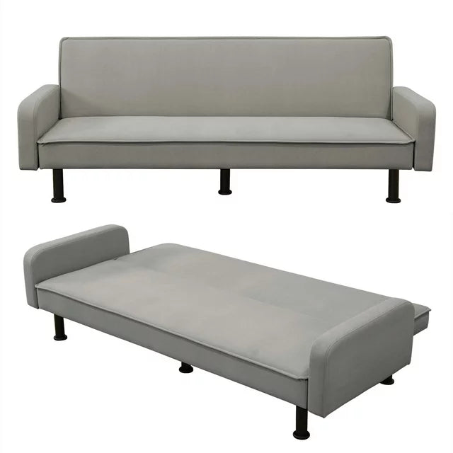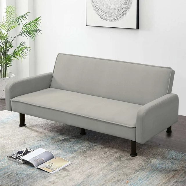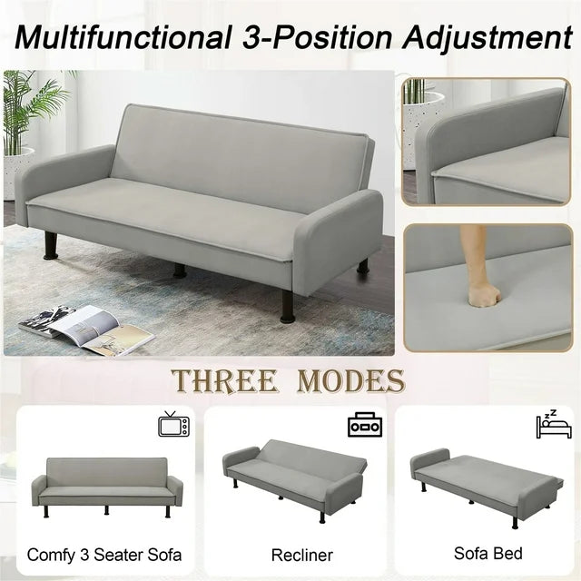 - CONVERTIBLE SOFA BED - This multi-functional futon sofa is designed with a folding backrest, and has three adjustable positions, which can easily convert into a recliner, where you can lie down to enjoy a movie, or convert into a sleeper to take a nap or for your friend's temporary overnight or a lounger to relax and read a book.
