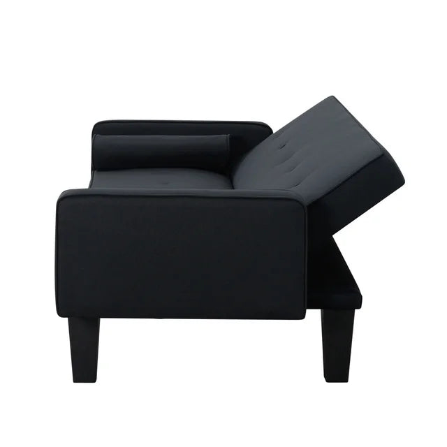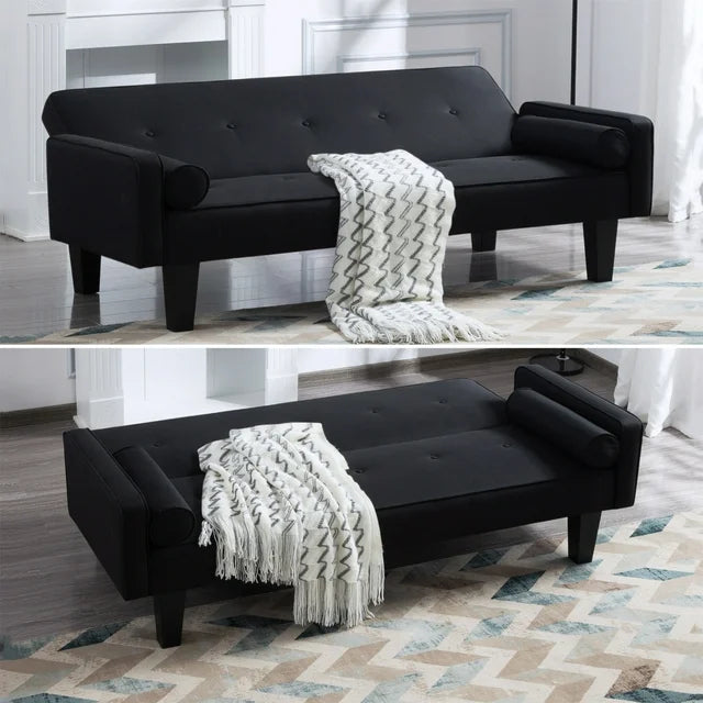 - UPDATED SQUARE ARM FUTON - This futon convertible sofa has something for everyone with a gorgeous tight backrest, and a modern pillow arm design, With a simple push or pull, it can easily convert from a sofa to a chaise or bed.