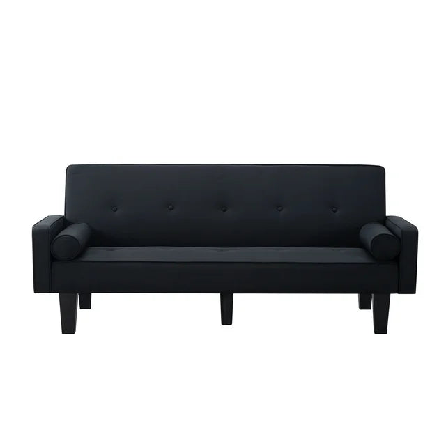 AENKYO 71" Square Arm Futon Convertible Sofa Bed for Home Office, 2 Pillows, Black