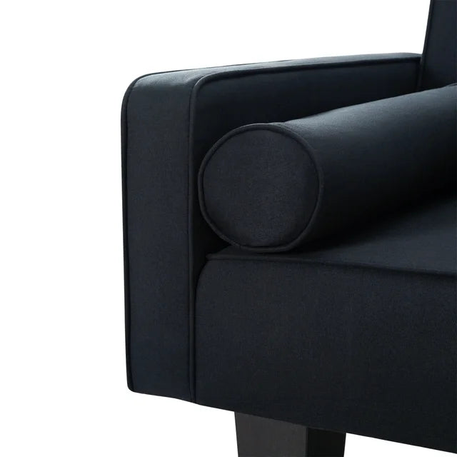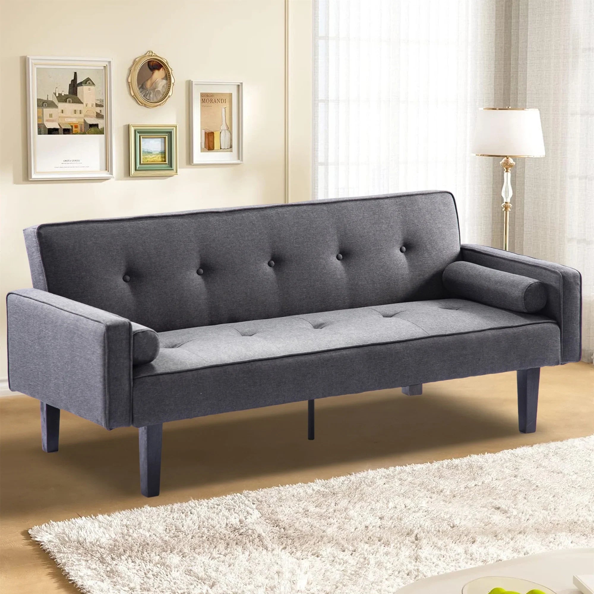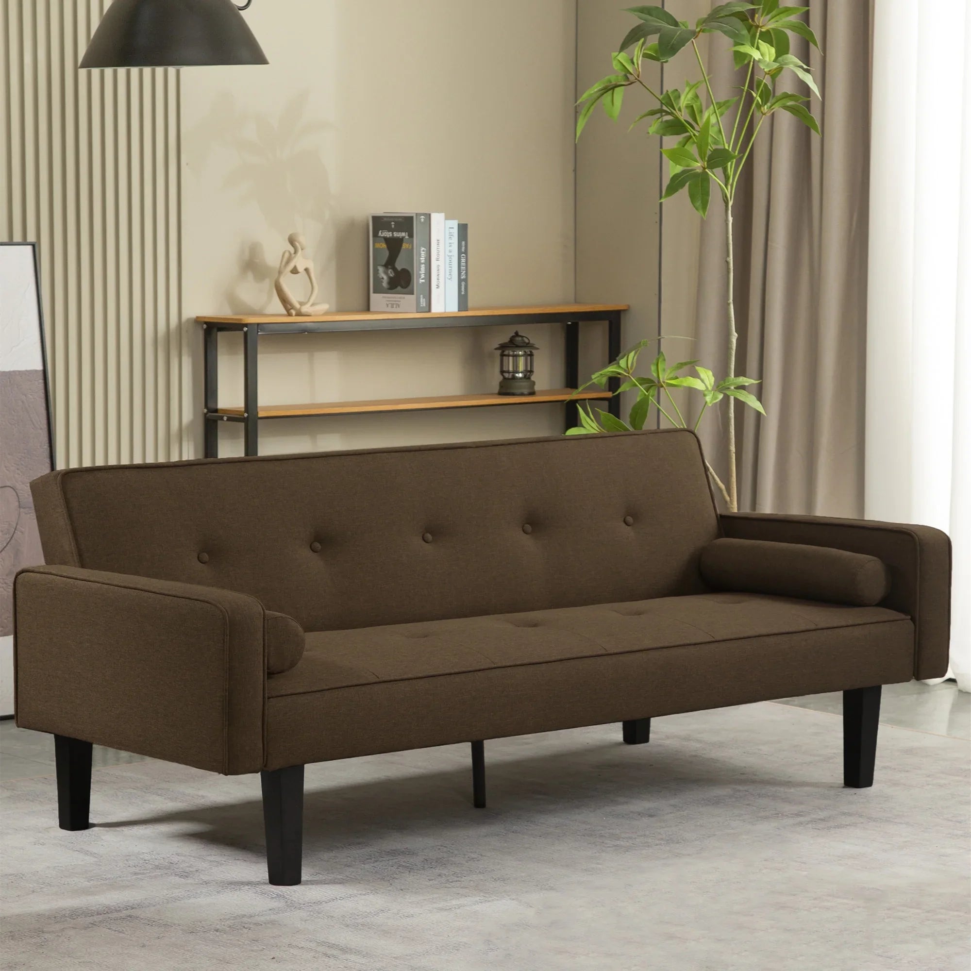 The DEALTOPS AK-FF01 Series futon sofa bed is a classic addition to your home that will never go out of style. If you're short on space and long for contemporary style, you're sure to find value in the multifunctional convertible futon couch. Ideal for apartments and home office/guest room shared spaces, this fine-contemporary option easily converts from a sofa into a futon to accommodate overnight guests. Crafted from a manufactured wood frame, linen fabric covering, foam fill, strong metal springs, and wood frame and modern plastic legs provide ample comfort and support for you and your guests, This convertible futon sofa bed features a flexible folding contraption to lock the backrest up to 2 tilt angles which is great for reading while the other is for lounging around or you can lay it flat and covert into a comfy twin platform bed. letting you relax and watch TV, read, have a snap, or sleep. Such a functional futon sofa is an ideal choice for you. Includes two pillows.