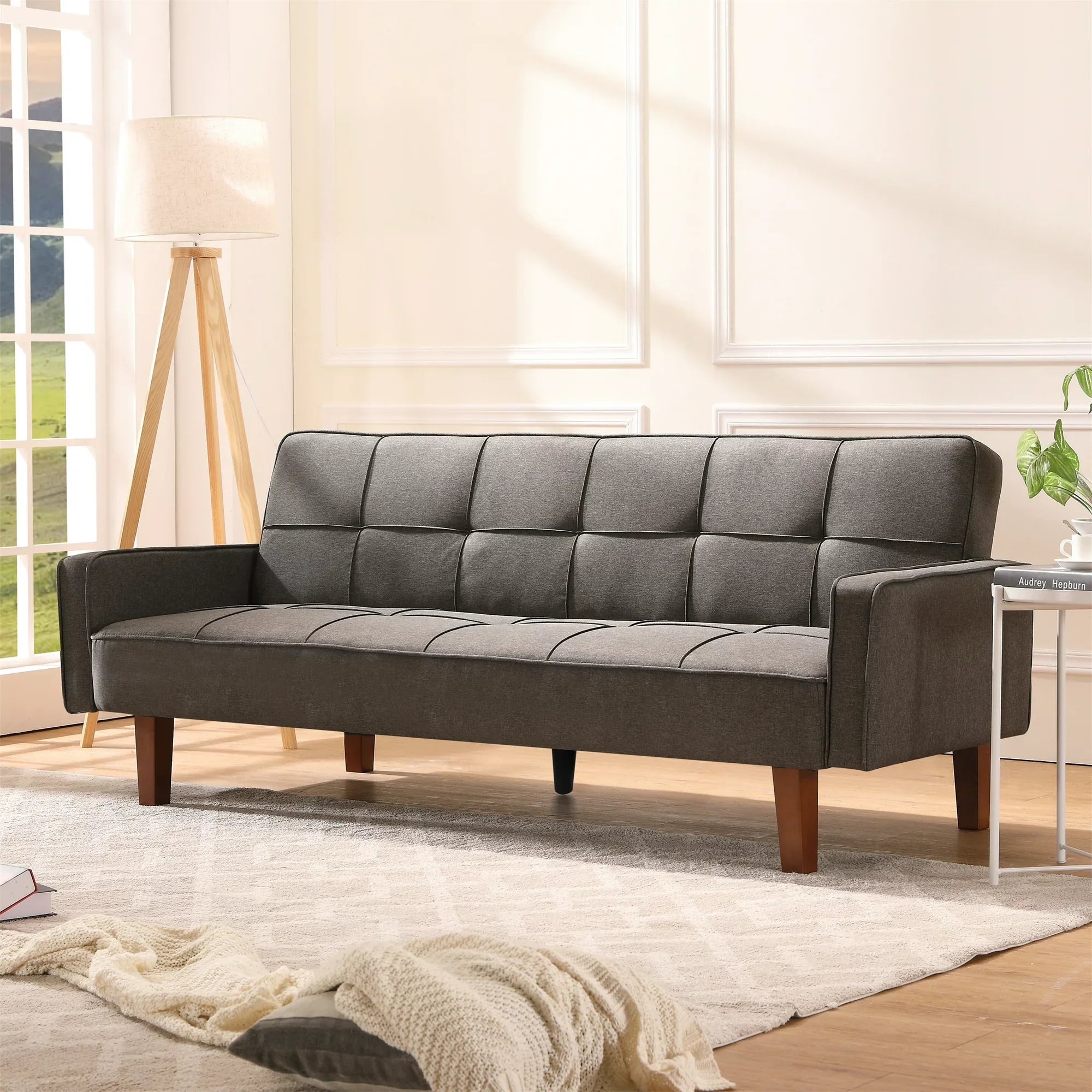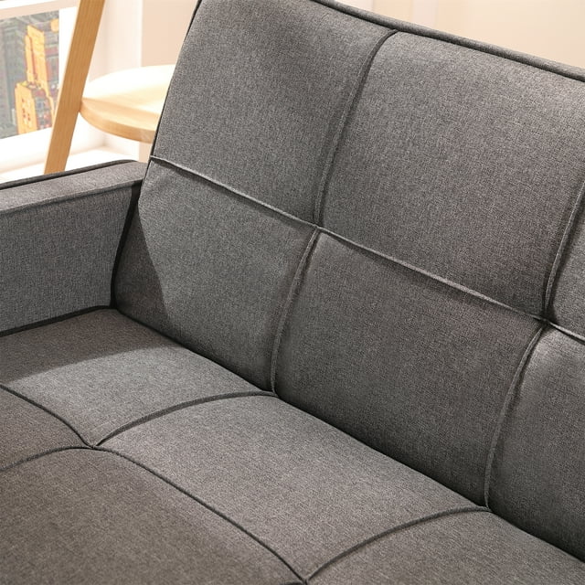 - DURABLE MATERIALS - Elevated on 4 modern tapered legs, This futon sofa bed is constructed of a manufactured wood frame, linen fabric upholstery, foam fill, and metal zig-zag springs for robust structure and unmatched durability.