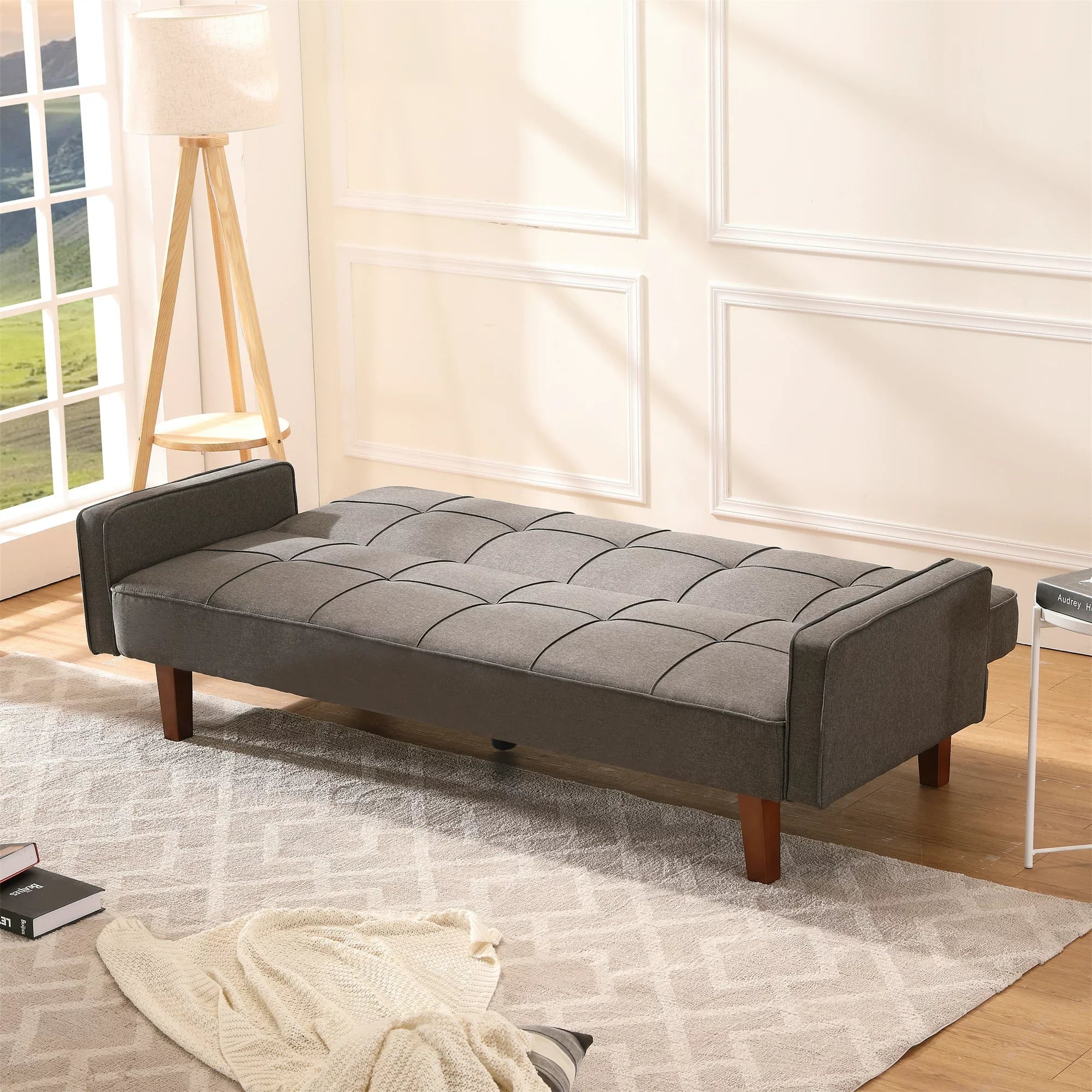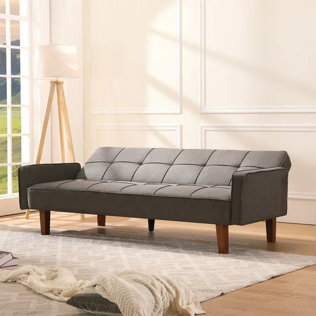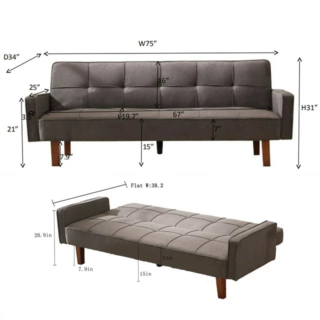 AENKYO 75" Futon Convertible Sofa Bed, Upholstered Arm Couch for Home Office, Gray