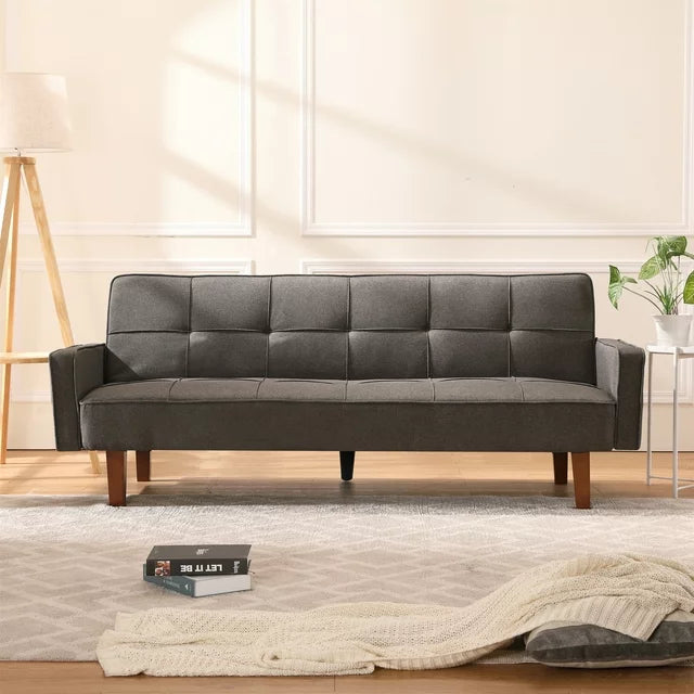 - UPDATED TUFTED FUTON - This futon convertible sofa has something for everyone with a gorgeous tight backrest, and a simple pillow arm design, With a simple push or pull, it can easily convert from a sofa to a chaise or bed.