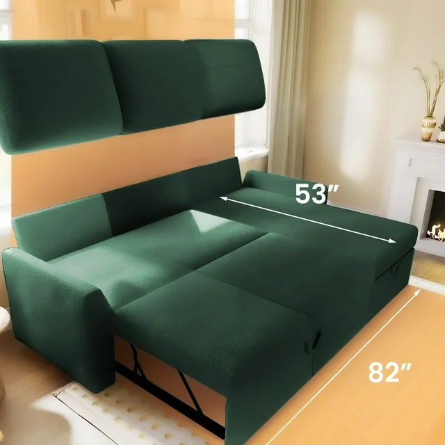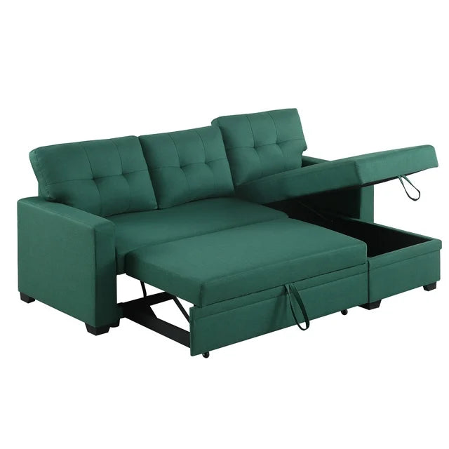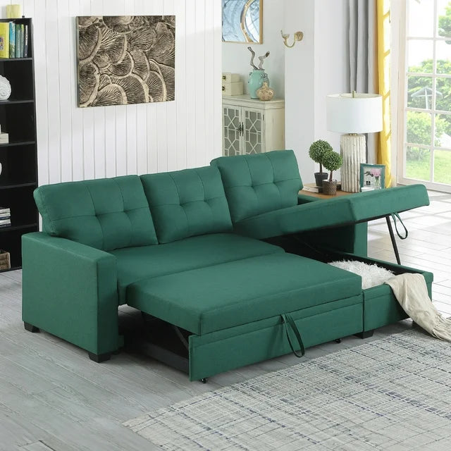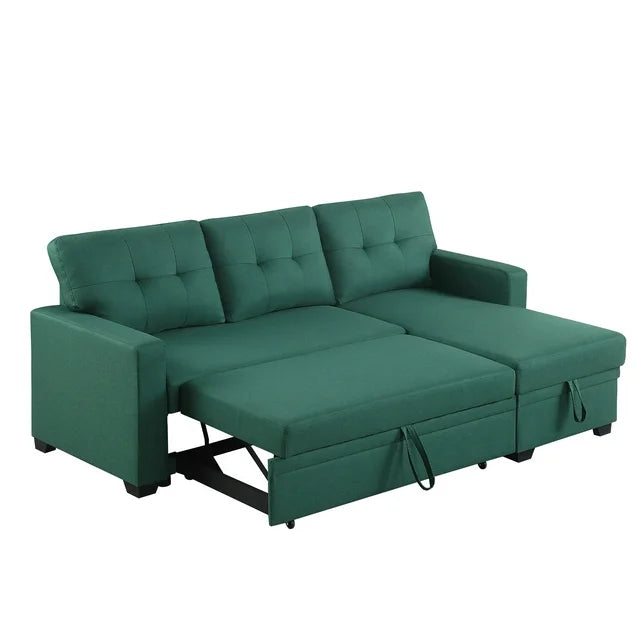 AENKYO 83" Sofa Bed, Sleeper Sofa, Pull Out Bed with Storage Chaise for Living Room, Linen, Green