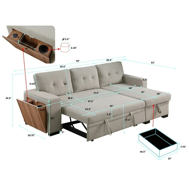 - STORAGE CHAISE FOR SPACE SAVING - Excellent space optimizer. It comes with a reversible chaise that includes a wide built-in storage compartment and a twin size pull-out bed.