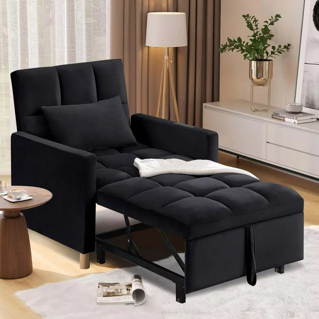 AENKYO Convertible Sleeper Chair Bed, Futon Chair, Adjustable Angle Backrest Chaise - Black