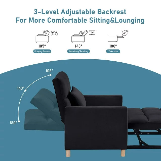 ADJUSTABLE BACKREST - The backrest of the sofa bed is adjustable within 3 reclining angles (105°,143° and 180°) so that you can choose the perfect angle you like to accompany your work, leisure, and relaxation time all day long. You can adapt to different scenarios from different angles, whether you want to be sitting, lounging, or sleeping. More, the sleeper sofa comes with a soft pillow for sleeping or added lumbar support.
