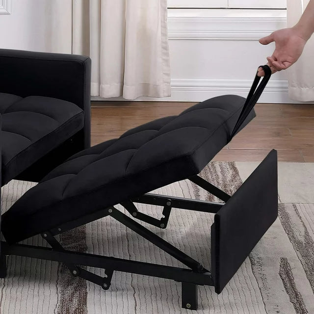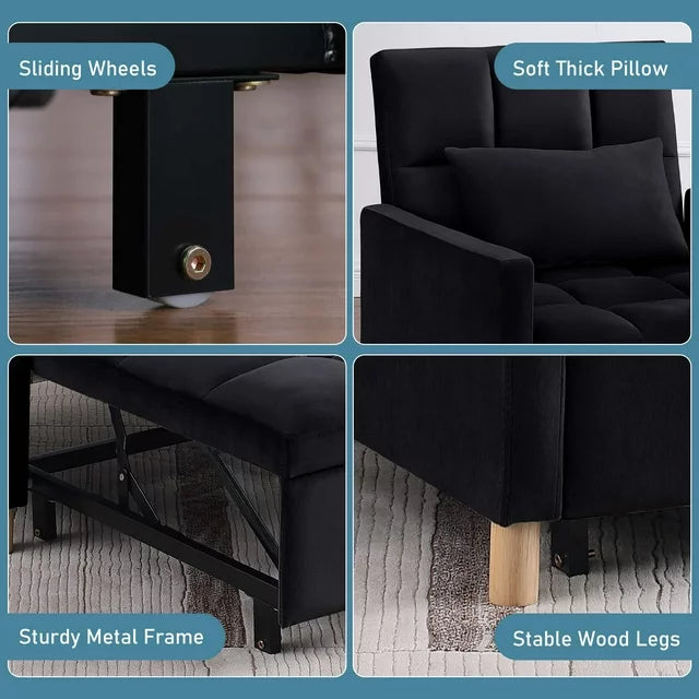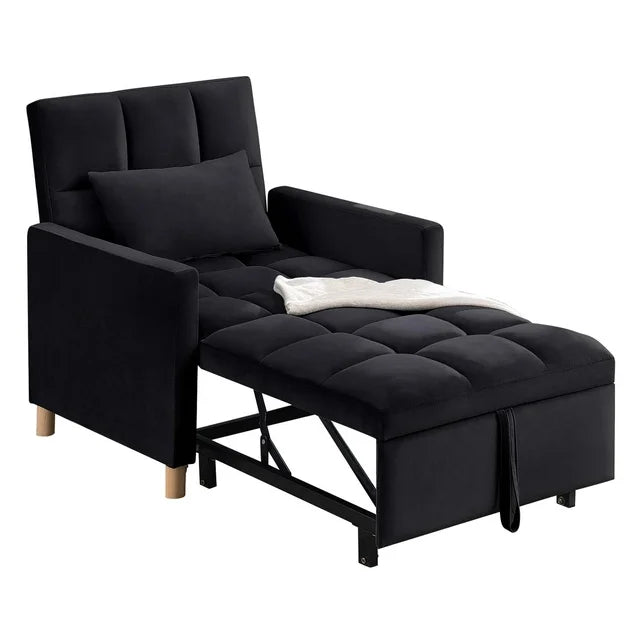 The DEALTOPS AK-FS02-016 Convertible Chair Bed gives a twist to convenience and comfort. This 3-in-1 Pull-out Sofa Chair is ideal for those looking to save space. There are 3 different angles to choose from for reclining, 105°, 143°and 180°, this futon chair can be a comfy plushy accent chair that transforms into a lounger chair with a sturdy back, which can transform into a sleeper bed. Padded with high-density sponge and covered with soft velvet fabric, the pull-out sleeper chair gives you comfortable sitting experience. The soft pillow provides adults with adequate lumbar and neck support. A sturdy metal frame ensures longer reliable usage and 330 lbs weight capacity. Great for offices, guest rooms, living rooms and small space.