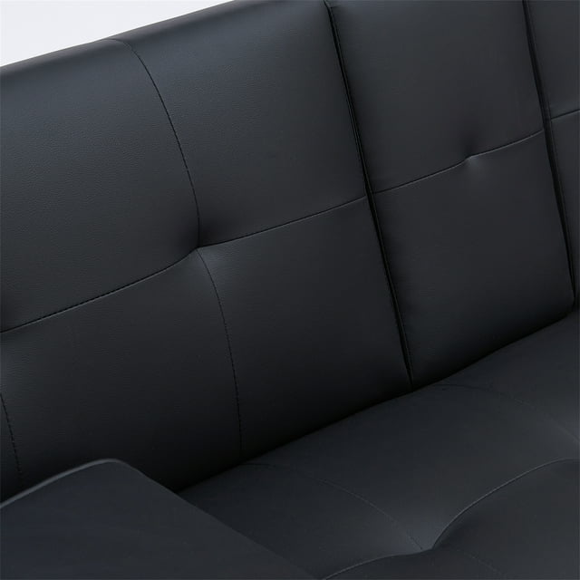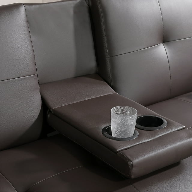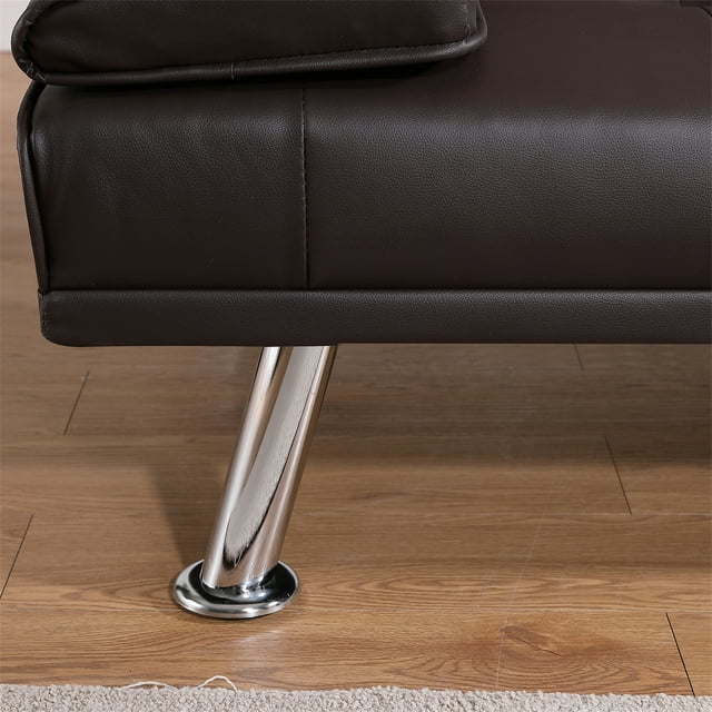 The DEALTOPS AK-FF01 collection stylish and comfortable futon sofa is a classic addition to your home that will never go out of style. Equipped with two convenient cup holders, this futon provides the perfect spot to keep your beverages close at hand while you relax or work. Experience the luxurious feel of leather upholstery that not only adds a touch of sophistication to any room but also ensures durability and easy maintenance. Versatility is key with this convertible sofa bed. This convertible futon bed features a flexible folding contraption to lock the backrest up to 3 tilt angles which is great for reading while the other is for lounging around or you can lay it flat and covert into a comfy twin platform bed. The smooth and hassle-free conversion process ensures that you can switch between functions effortlessly, making it an ideal choice for small living spaces, guest rooms, home offices, or any area where space is limited.