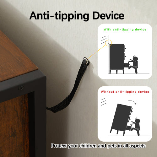 Durable and Sturdy Construction - Crafted with a high-quality solid wood body and a robust black steel frame, this dresser is built to last. It includes anti-tipping accessories for added safety, and the water and scratch-resistant surface, along with durable drawer slides, ensures longevity and easy maintenance.